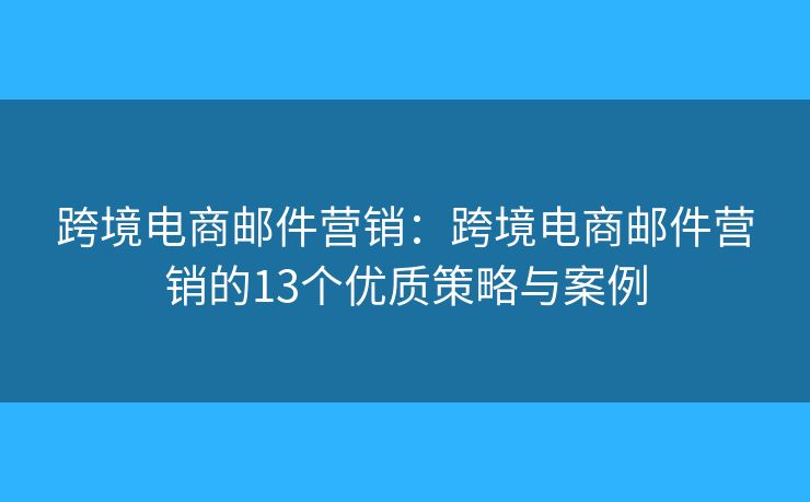 跨境电商邮件营销:跨境电商邮件营销的13个优质策略与案例